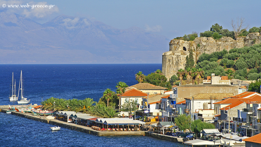 Le château se situe à l’Est de la ville, et fut occupé dès 1206 par les Vénitiens. Son emplacement permettait un contrôle constant sur la route maritime entre la Crète et l’Adriaque. La ville servait également d’escale aux marins qui empruntaient la route des détroits. En 1500 le château fut occupé par les Turques, puis fut sous domination Ottomane jusqu’à la guerre de Morée [la sixième guerre opposant la république de Venise à l’empire Ottoman de 1684 à 1699] où les Vénitiens reprirent la ville jusqu’en 1715. Puis malgré quelques divers sièges Grecques, la ville ne se rendit qu’en 1828 aux Français de l’expédition de Morée. [nom donné en France à l’intervention de l’armée Française dans le Péloponnèse lors de la guerre d’indépendance Grecque afin de les libérer de la domination par l’empire Ottoman.]