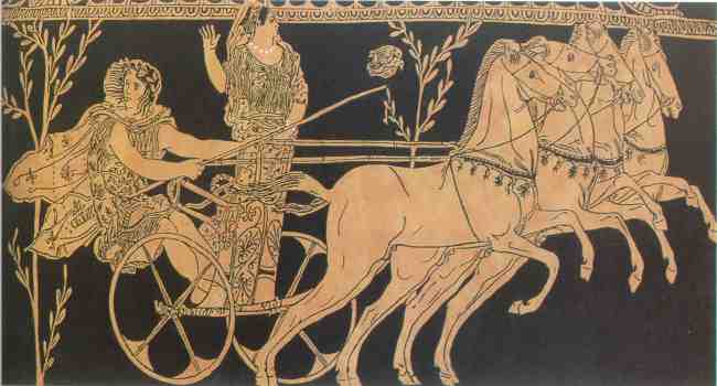 représentation de Pélops [derrière] et Hippodamie debout sur le char