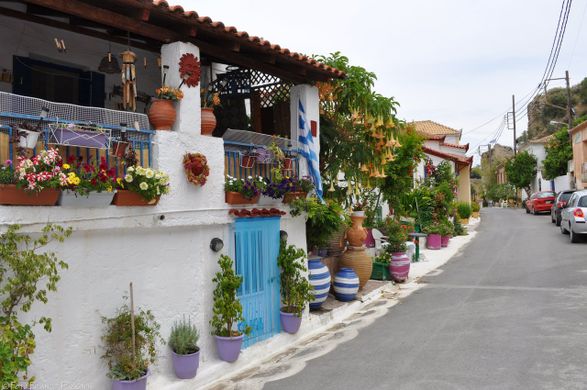 Si vous aimez les chats, vous adorerez la ville. On en croise à tous les coins du rue [comme dans beaucoup de villes grecques], j’ai trouvé ça tellement mignon. Ils u en avait jusqu’en haut du château, où il y a des espaces en ruine où la végétation a repris sa place. Si vous êtes croyants, [où non d’ailleurs, peut-importe] il y a un couvent en haut des ruines, il est très petit et l’endroit est magnifique. Leur petit jardin est très bien entretenu et on y trouve des fleurs en tout genre ce qui nous fait oublier que c’est un lieu sacré[si vous y allez penser a quelque chose pour vous couvrir les jambes si vous êtes en short ou en jupe assez court car elles n’apprécient pas beaucoup, et c’est assez dur de comprendre en Grecque aha]. Les rues de Koroni sont très typiques, il y a des murs avec des peintures en tout genre, mais toujours très colorés, ce qui lui donne beaucoup de charme. On trouve aussi quelques boutiques artisanales qui proposent des bijoux, des bibelots, des portes-clés… très mignons, comme souvenir de vacances!